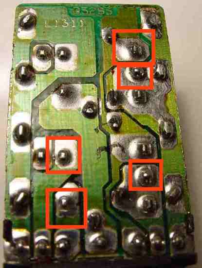To fix the unit, you need to re-solder the joints to the relays on the PCB.... note the little moat-like rings on some of the soldering above -that's a proabable bad joint, they should all be nice and tent-like without the moat. You'll need:
